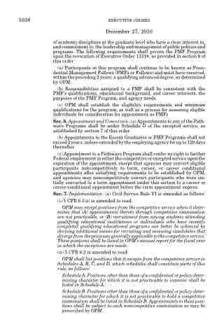 of academic disciplines at the graduate level who have a clear interest in, and commitment to, the leadership and management of public policies and programs. The following requirements shall govern the PMF Program upon the revocation of Executive Order 13318, as provided in section 8 of this order: