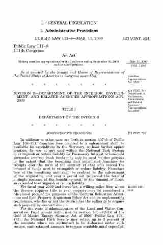 123 STAT. 701 Department of the Interior, Environment, and Related Agencies Appropriations Act, 2009.