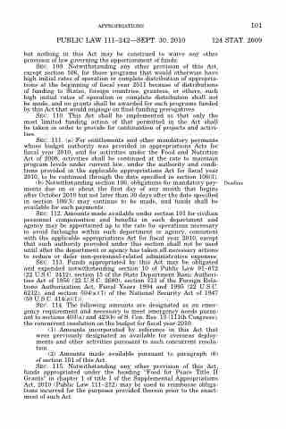 APPROPRIATIONS 101 PUBLIC LAW 111–242—SEPT. 30, 2010 124 STAT. 2609