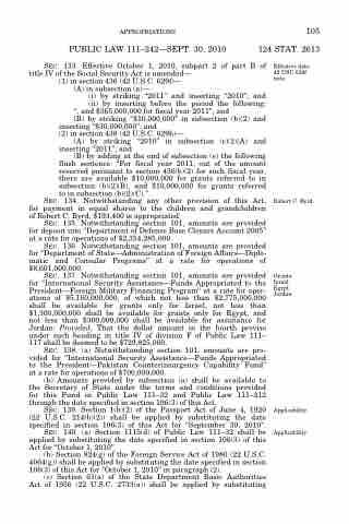 APPROPRIATIONS 105 PUBLIC LAW 111–242—SEPT. 30, 2010 124 STAT. 2613