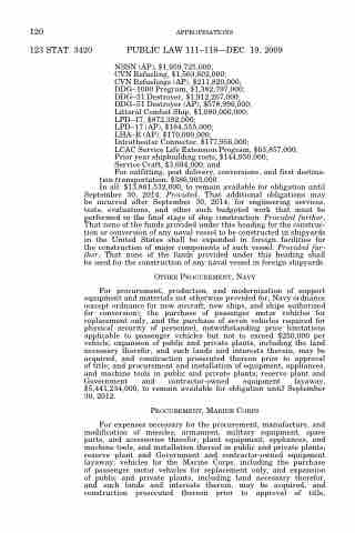 For procurement, production, and modernization of support equipment and materials not otherwise provided for, Navy ordnance (except ordnance for new aircraft, new ships, and ships authorized for conversion); the purchase of passenger motor vehicles for replacement only, and the purchase of seven vehicles required for physical security of personnel, notwithstanding price limitations applicable to passenger vehicles but not to exceed $250,000 per vehicle; expansion of public and private plants, including the land necessary therefor, and such lands and interests therein, may be acquired, and construction prosecuted thereon prior to approval of title; and procurement and installation of equipment, appliances, and machine tools in public and private plants; reserve plant and Government and contractor-owned equipment layaway, $5,441,234,000, to remain available for obligation until September 30, 2012.