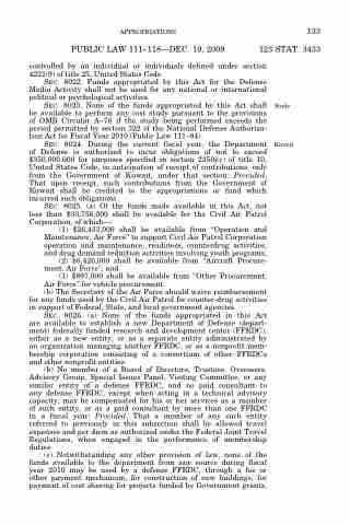 APPROPRIATIONS 133 PUBLIC LAW 111–118—DEC. 19, 2009 123 STAT. 3433