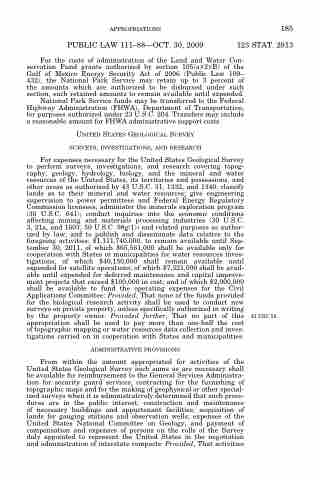 For expenses necessary for the United States Geological Survey to perform surveys, investigations, and research covering topog- raphy, geology, hydrology, biology, and the mineral and water resources of the United States, its territories and possessions, and other areas as authorized by 43 U.S.C. 31, 1332, and 1340; classify lands as to their mineral and water resources; give engineering supervision to power permittees and Federal Energy Regulatory Commission licensees; administer the minerals exploration program (30 U.S.C. 641); conduct inquiries into the economic conditions affecting mining and materials processing industries (30 U.S.C. 3, 21a, and 1603; 50 U.S.C. 98g(1)) and related purposes as author- ized by law; and to publish and disseminate data relative to the foregoing activities; $1,111,740,000, to remain available until Sep- tember 30, 2011, of which $65,561,000 shall be available only for cooperation with States or municipalities for water resources inves- tigations; of which $40,150,000 shall remain available until expended for satellite operations; of which $7,321,000 shall be avail- able until expended for deferred maintenance and capital improve- ment projects that exceed $100,000 in cost; and of which $2,000,000 shall be available to fund the operating expenses for the Civil Applications Committee: Provided, That none of the funds provided for the biological research activity shall be used to conduct new surveys on private property, unless specifically authorized in writing by the property owner: Provided further, That no part of this appropriation shall be used to pay more than one-half the cost of topographic mapping or water resources data collection and inves- tigations carried on in cooperation with States and municipalities.
