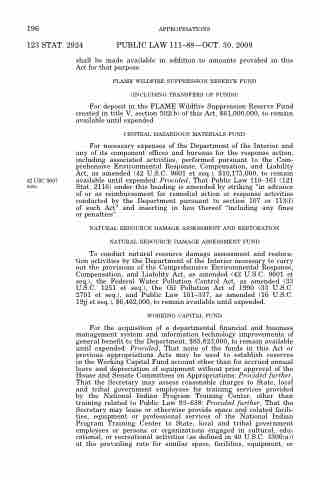 For necessary expenses of the Department of the Interior and any of its component offices and bureaus for the response action, including associated activities, performed pursuant to the Com- prehensive Environmental Response, Compensation, and Liability Act, as amended (42 U.S.C. 9601 et seq.), $10,175,000, to remain available until expended: Provided, That Public Law 110–161 (121 Stat. 2116) under this heading is amended by striking ‘‘in advance of or as reimbursement for remedial action or response activities conducted by the Department pursuant to section 107 or 113(f) of such Act’’ and inserting in lieu thereof ‘‘including any fines or penalties’’.