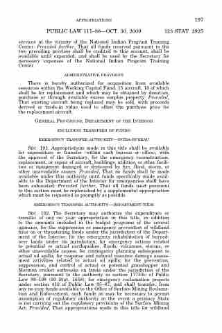 GENERAL PROVISIONS, DEPARTMENT OF THE INTERIOR (INCLUDING TRANSFERS OF FUNDS) EMERGENCY TRANSFER AUTHORITY—INTRA-BUREAU