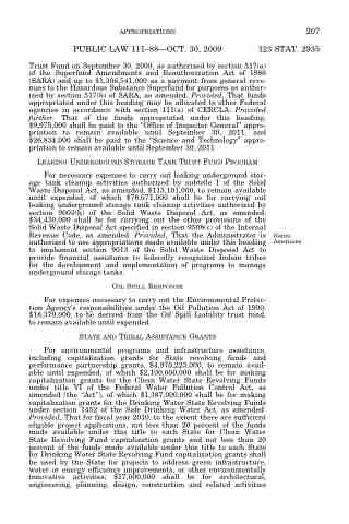 Trust Fund on September 30, 2009, as authorized by section 517(a) of the Superfund Amendments and Reauthorization Act of 1986 (SARA) and up to $1,306,541,000 as a payment from general reve- nues to the Hazardous Substance Superfund for purposes as author- ized by section 517(b) of SARA, as amended: Provided, That funds appropriated under this heading may be allocated to other Federal agencies in accordance with section 111(a) of CERCLA: Provided further, That of the funds appropriated under this heading, $9,975,000 shall be paid to the ‘‘Office of Inspector General’’ appro- priation to remain available until September 30, 2011, and $26,834,000 shall be paid to the ‘‘Science and Technology’’ appro- priation to remain available until September 30, 2011.