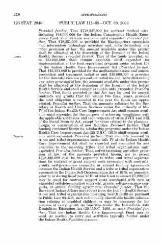 Reports. able until expended: Provided further, That amounts received by tribes and tribal organizations under title IV of the Indian Health Care Improvement Act shall be reported and accounted for and available to the receiving tribes and tribal organizations until expended: Provided further, That, notwithstanding any other provi- sion of law, of the amounts provided herein, not to exceed $398,490,000 shall be for payments to tribes and tribal organiza- tions for contract or grant support costs associated with contracts, grants, self-governance compacts, or annual funding agreements between the Indian Health Service and a tribe or tribal organization pursuant to the Indian Self-Determination Act of 1975, as amended, prior to or during fiscal year 2010, of which not to exceed $5,000,000 may be used for contract support costs associated with new or expanded self-determination contracts, grants, self-governance com- pacts, or annual funding agreements: Provided further, That the Bureau of Indian Affairs may collect from the Indian Health Service, tribes and tribal organizations operating health facilities pursuant to Public Law 93–638, such individually identifiable health informa- tion relating to disabled children as may be necessary for the purpose of carrying out its functions under the Individuals with Disabilities Education Act (20 U.S.C. 1400, et seq.): Provided fur- ther, That the Indian Health Care Improvement Fund may be used, as needed, to carry out activities typically funded under the Indian Health Facilities account.