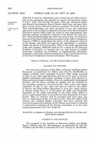 For necessary expenses of the Office of Navajo and Hopi Indian Relocation as authorized by Public Law 93–531, $8,000,000, to remain available until expended: Provided, That funds provided in this or any other appropriations Act are to be used to relocate eligible individuals and groups including evictees from District 6, Hopi-partitioned lands residents, those in significantly substandard housing, and all others certified as eligible and not included in the preceding categories: Provided further, That none of the funds contained in this or any other Act may be used by the Office of Navajo and Hopi Indian Relocation to evict any single Navajo or Navajo family who, as of November 30, 1985, was physically domiciled on the lands partitioned to the Hopi Tribe unless a new or replacement home is provided for such household: Provided further, That no relocatee will be provided with more than one new or replacement home: Provided further, That the Office shall relocate any certified eligible relocatees who have selected and received an approved homesite on the Navajo reservation or selected a replacement residence off the Navajo reservation or on the land acquired pursuant to 25 U.S.C. 640d–10.