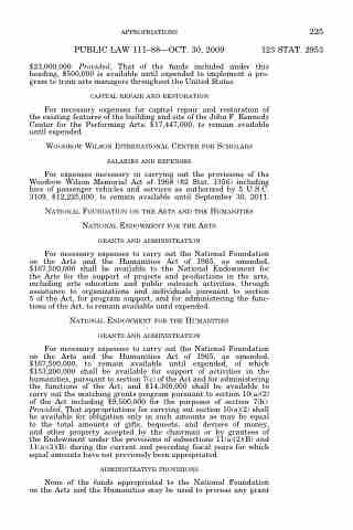 APPROPRIATIONS 225 PUBLIC LAW 111–88—OCT. 30, 2009 123 STAT. 2953