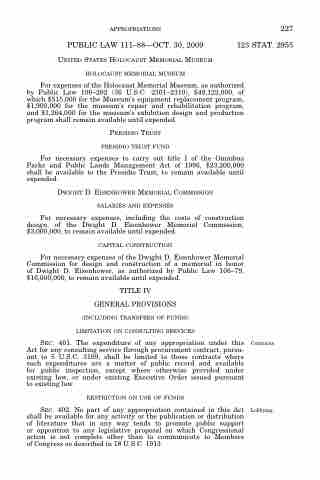 PUBLIC LAW 111–88—OCT. 30, 2009 123 STAT. 2955