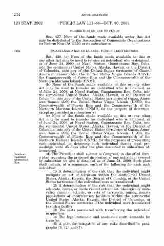 SEC. 428. (a) None of the funds made available in this or any other Act may be used to release an individual who is detained, as of June 24, 2009, at Naval Station, Guantanamo Bay, Cuba, into the continental United States, Alaska, Hawaii, or the District of Columbia, into any of the United States territories of Guam, American Samoa (AS), the United States Virgin Islands (USVI), the Commonwealth of Puerto Rico and the Commonwealth of the Northern Mariana Islands (CNMI).