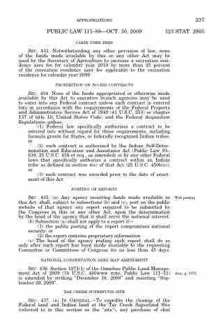 APPROPRIATIONS 237 PUBLIC LAW 111–88—OCT. 30, 2009 123 STAT. 2965