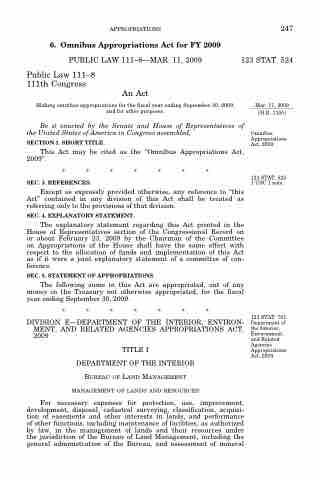 123 STAT. 701 Department of the Interior, Environment, and Related Agencies Appropriations Act, 2009.