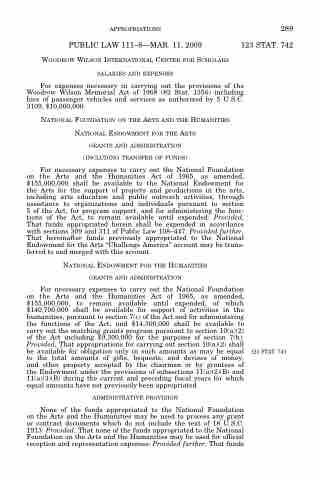 None of the funds appropriated to the National Foundation on the Arts and the Humanities may be used to process any grant or contract documents which do not include the text of 18 U.S.C. 1913: Provided, That none of the funds appropriated to the National Foundation on the Arts and the Humanities may be used for official reception and representation expenses: Provided further, That funds