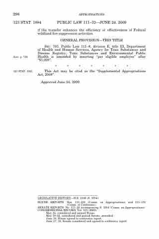 SENATE REPORTS: No. 111–20 accompanying S. 1054 (Comm. on Appropriations). CONGRESSIONAL RECORD, Vol. 155 (2009):