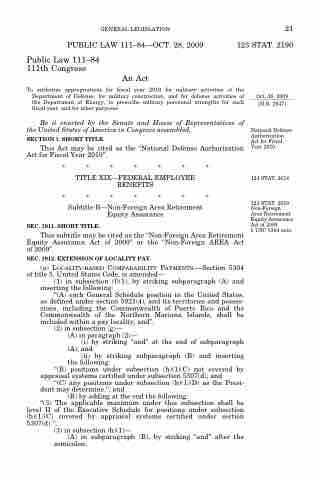 123 STAT. 2619 Non-Foreign Area Retirement Equity Assurance Act of 2009.