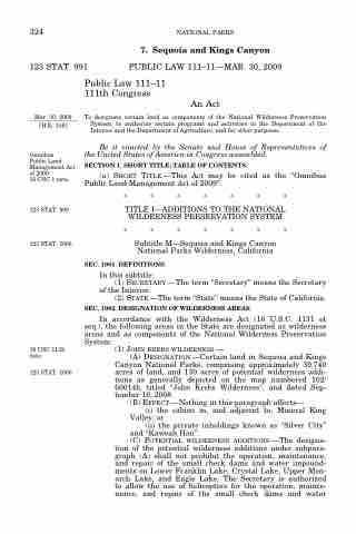 Subtitle M—Sequoia and Kings Canyon National Parks Wilderness, California