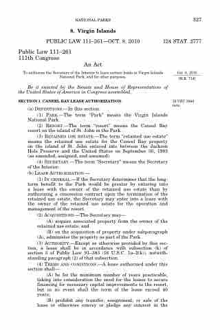 To authorize the Secretary of the Interior to lease certain lands in Virgin Islands National Park, and for other purposes.