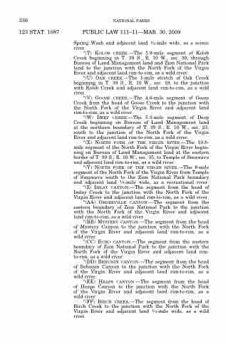 ‘‘(X) NORTH FORK OF THE VIRGIN RIVER.—The 10.8- mile segment of the North Fork of the Virgin River begin- ning on Bureau of Land Management land at the eastern border of T. 39 S., R. 10 W., sec. 35, to Temple of Sinawava and adjacent land rim-to-rim, as a wild river.
