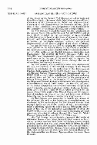 (9) Ted Stevens was committed to health and fitness in his personal life and in his legislative accomplishments, as illustrated by his authorship of the Ted Stevens Amateur and Olympic Sports Act (36 U.S.C. 220501 et seq.), his encourage- ment of providing equality to female athletes through the enact- ment of title IX of the Education Amendments of 1972 (20 U.S.C. 1681 et seq.), and his leadership in improving physical education programs in schools through the Carol M. White Physical Education Program (20 U.S.C. 7261 et seq.);