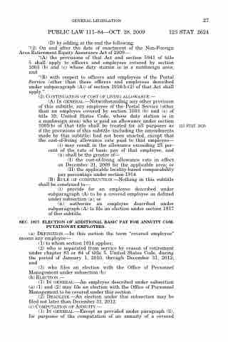 (A) IN GENERAL.—Notwithstanding any other provision of this subtitle, any employee of the Postal Service (other than an employee covered by section 1003 (b) and (c) of title 39, United States Code, whose duty station is in a nonforeign area) who is paid an allowance under section 1005(b) of that title shall be treated for all purposes as if the provisions of this subtitle (including the amendments made by this subtitle) had not been enacted, except that the cost-of-living allowance rate paid to that employee— (i) may result in the allowance exceeding 25 per- cent of the rate of basic pay of that employee; and