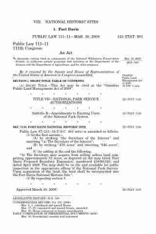 VIII. NATIONAL HISTORIC SITES