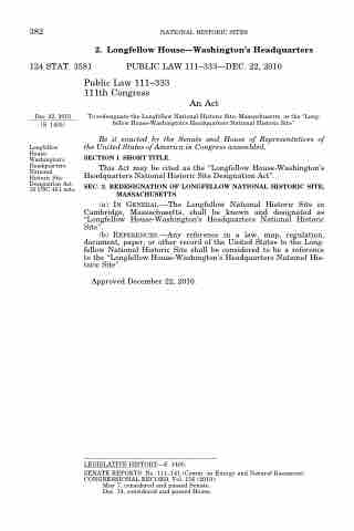 (a) IN GENERAL.—The Longfellow National Historic Site in Cambridge, Massachusetts, shall be known and designated as ‘‘Longfellow House-Washington’s Headquarters National Historic Site’’.