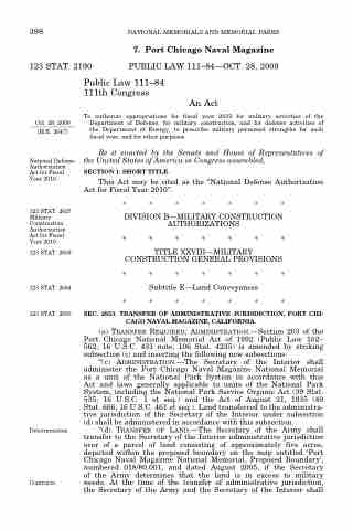123 STAT. 2627 Military Construction Authorization Act for Fiscal Year 2010.