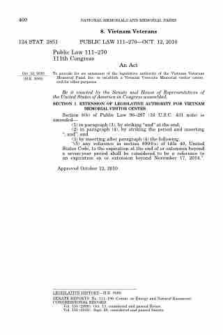 SECTION 1. EXTENSION OF LEGISLATIVE AUTHORITY FOR VIETNAM MEMORIAL VISITOR CENTER.