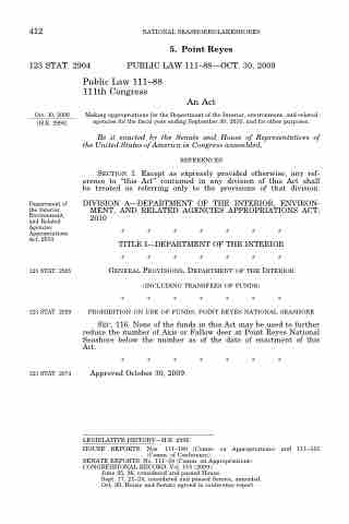 ******* PROHIBITION ON USE OF FUNDS, POINT REYES NATIONAL SEASHORE