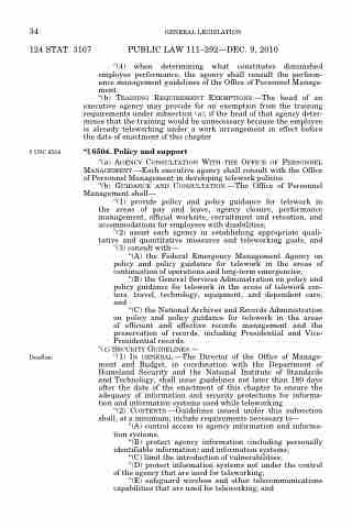 policy and policy guidance for telework in the areas of continuation of operations and long-term emergencies;