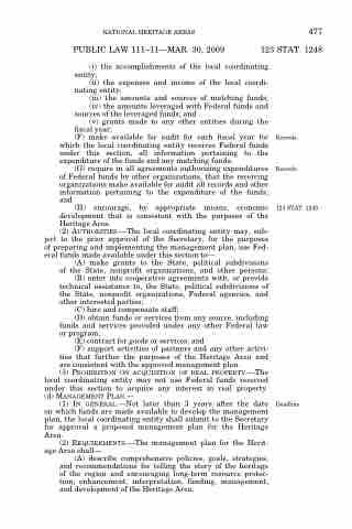NATIONAL HERITAGE AREAS 477 PUBLIC LAW 111–11—MAR. 30, 2009 123 STAT. 1248