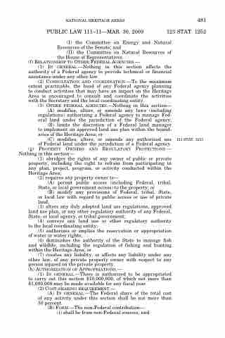NATIONAL HERITAGE AREAS 481 PUBLIC LAW 111–11—MAR. 30, 2009 123 STAT. 1252