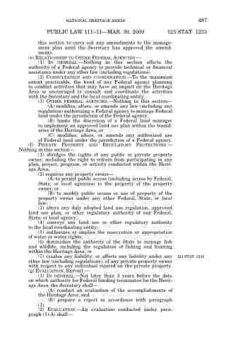 NATIONAL HERITAGE AREAS 487 PUBLIC LAW 111–11—MAR. 30, 2009 123 STAT. 1233