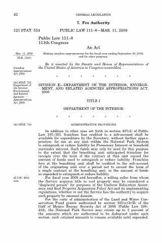 123 STAT. 701 Department of the Interior, Environment, and Related Agencies Appropriations Act, 2009.