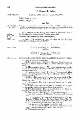 National Wildlife Refuge, the Great Sand Dunes National Park and Preserve, and other areas included in the map. (3) MAP.—A map of the Heritage Area shall be—