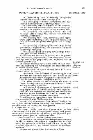 NATIONAL HERITAGE AREAS 561 PUBLIC LAW 111–11—MAR. 30, 2009 123 STAT. 1236