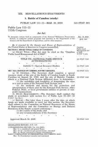 SEC. 7211. BATTLE OF CAMDEN, SOUTH CAROLINA.