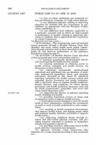 MISCELLANEOUS ENACTMENTS PUBLIC LAW 111–13—APR. 21, 2009