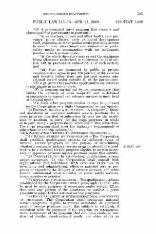 ‘‘(1) ESTABLISHMENT BY CORPORATION.—The Corporation shall establish qualification criteria for different types of national service programs for the purpose of determining whether a particular national service program should be consid- ered to be a national service program eligible to receive assist- ance or approved national service positions under this subtitle. ‘‘(2) CONSULTATION.—In establishing qualification criteria under paragraph (1), the Corporation shall consult with organizations and individuals with extensive experience in developing and administering effective national service pro- grams or regarding the delivery of veteran services, and other human, educational, environmental, or public safety services,