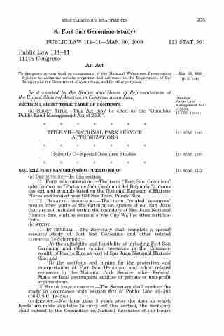 (A) the suitability and feasibility of including Fort San Gero´nimo and other related resources in the Common- wealth of Puerto Rico as part of San Juan National Historic Site; and
