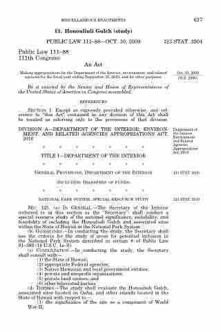 SEC. 125. (a) IN GENERAL.—The Secretary of the Interior (referred to in this section as the ‘‘Secretary’’) shall conduct a special resource study of the national significance, suitability, and feasibility of including the Honouliuli Gulch and associated sites within the State of Hawaii in the National Park System.