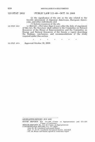 PUBLIC LAW 111–88—OCT. 30, 2009