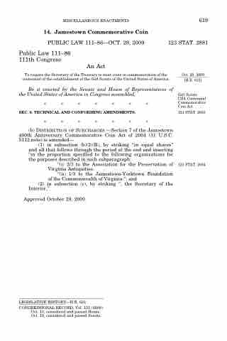CONGRESSIONAL RECORD, Vol. 155 (2009): Oct. 13, considered and passed House. Oct. 19, considered and passed Senate.