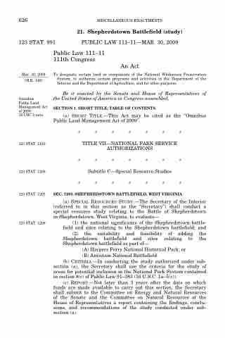 (1) the national significance of the Shepherdstown battle- field and sites relating to the Shepherdstown battlefield; and