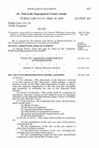 to in this section as the ‘‘Secretary’’) shall conduct a special resource study of the Tule Lake Segregation Center to deter- mine the national significance of the site and the suitability and feasibility of including the site in the National Park System.
