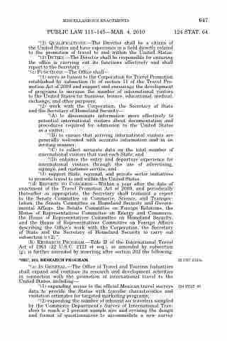‘‘(1) serve as liaison to the Corporation for Travel Promotion established by subsection (b) of section 11 of the Travel Pro- motion Act of 2009 and support and encourage the development of programs to increase the number of international visitors to the United States for business, leisure, educational, medical, exchange, and other purposes;