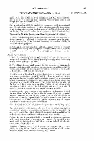 nized lawful uses of the sea in the monument and shall incorporate the provisions of this proclamation regarding Armed Forces actions and compliance with international law.