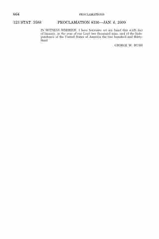 IN WITNESS WHEREOF, I have hereunto set my hand this sixth day of January, in the year of our Lord two thousand nine, and of the Inde- pendence of the United States of America the two hundred and thirty- third.
