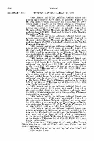 ‘‘(19) Certain land in the Jefferson National Forest com- prising approximately 1,203 acres, as generally depicted on the map entitled ‘Peters Mountain Addition’ and dated April 28, 2008, which is incorporated in the Peters Mountain Wilder- ness designated by section 2(7) of the Virginia Wilderness Act of 1984 (16 U.S.C. 1132 note; Public Law 98–586).